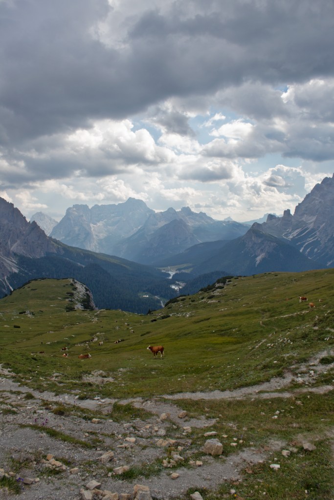Da qui proseguiamo verso la Forcella Col de Medo (2315 metri) dove rientriamo di nuovo in territorio Bellunese. Davanti a noi centinaia di mucche che pascolano lungo i prati erbosi. Manca veramente poco al rifugio Auronzo. Proseguiamo seguendo il segnavia n. 105 e in 30 minuti circa concludiamo il nostro anello arrivando al punto di partenza.