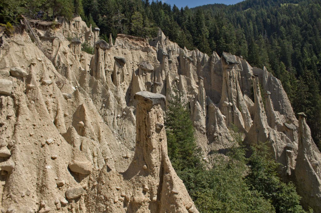 Nella quinta tappa vi portiamo in un luogo insolito: le piramidi di terra. Sì, avete letto bene. In Sudtirol ne troverete vari esempi. Noi abbiamo visitato quelle di Perca, un vero capolavoro architettonico della natura. Conoscete la loro storia? L’origine della piramidi di terra di Perca è naturale e risale a centinaia di anni fa quando, in seguito ad un nubifragio, si formò una frana che interruppe la mulattiera che univa il maso “Thalerhof” e Sopranessano. Nel 1882 si verificò nuovamente un forte temporale che causò una grande spaccatura. In seguito all’azione di dilavazione ed erosione dei pendii sassosi si crearono delle colonne argillose sormontate da grandi pietre. Come potrete immaginare, le piramidi di terra sono in costante mutamento.