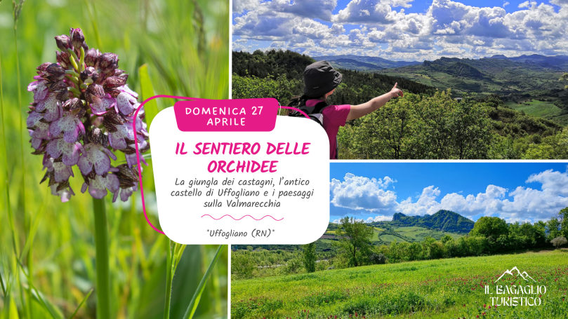 In questa nuova super avventura faremo tappa in uno dei luoghi piΓΉ iconici per la fioritura delle orchidee selvatiche: Uffogliano. Piccolo borgo situato nel comune di Novafeltria, racchiude habitat variegati di grande valore naturalistico e stupende vedute sullβintera valle e sullβappennino marchigiano. Un trekking ad anello che, attraverso il Monte Bigoncio e lβOasi di Montebello, inebriati dal profumo delle prime ginestre in fiore, ci permetterΓ di raggiungere la giungla dei castagni, luogo magico e ricco di storia. Cammineremo immersi in un castagneto secolare che in questo periodo dellβanno ospita la fioritura di numerose e bellissime orchidee selvatiche. A pochi passi da questa meraviglia sorgeva lβantico castello di Uffogliano, protagonista di una storia davvero particolare. Prima di arrivare alle rovine del vecchio maniero faremo tappa al punto panoramico ai piedi del Monte Matto dove, con un poβ di fortuna, potremo ammirare i primi coloratissimi gruccioni volati qui dallβAfrica in un lunghissimo viaggio per nidificare sulle magnifiche pareti arenacee. Un vero eden immerso nella Valmarecchia!