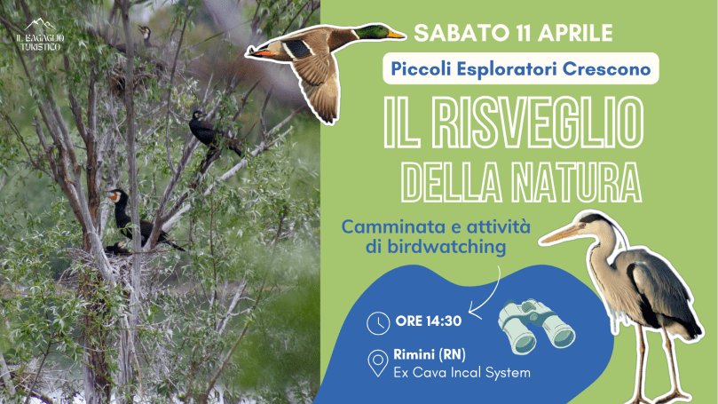 Andremo alla scoperta di un luogo del tutto inaspettato a pochi passi dal centro di Rimini e di Santarcangelo: il lago In.Cal System. Γ un sistema di zone umide di origine artificiale che si trova a ridosso del fiume Marecchia. Specchi dβacqua di grandissima importanza che forniscono un habitat ideale per numerose specie di uccelli e di piante. Qui Γ¨ presente un meraviglioso bosco allagato che ospita la βgarzaiaβ: una colonia riproduttiva di aironi e cormorani. Percorreremo il sentiero storico-naturalistico del fiume Marecchia e giungeremo al lago Incal System dove svolgeremo una bellissima attivitΓ di birdwatching. Muniti di binocolo diventeremo dei veri βbirdwatcherβ e osserveremo gli abitanti del lago, divertendoci a compilare una scheda con le loro caratteristiche. Non mancherΓ anche la parte artistica. SarΓ una giornata dedicata alla scoperta della biodiversitΓ e soprattutto dellβavifauna che ospita questo paradiso umido.