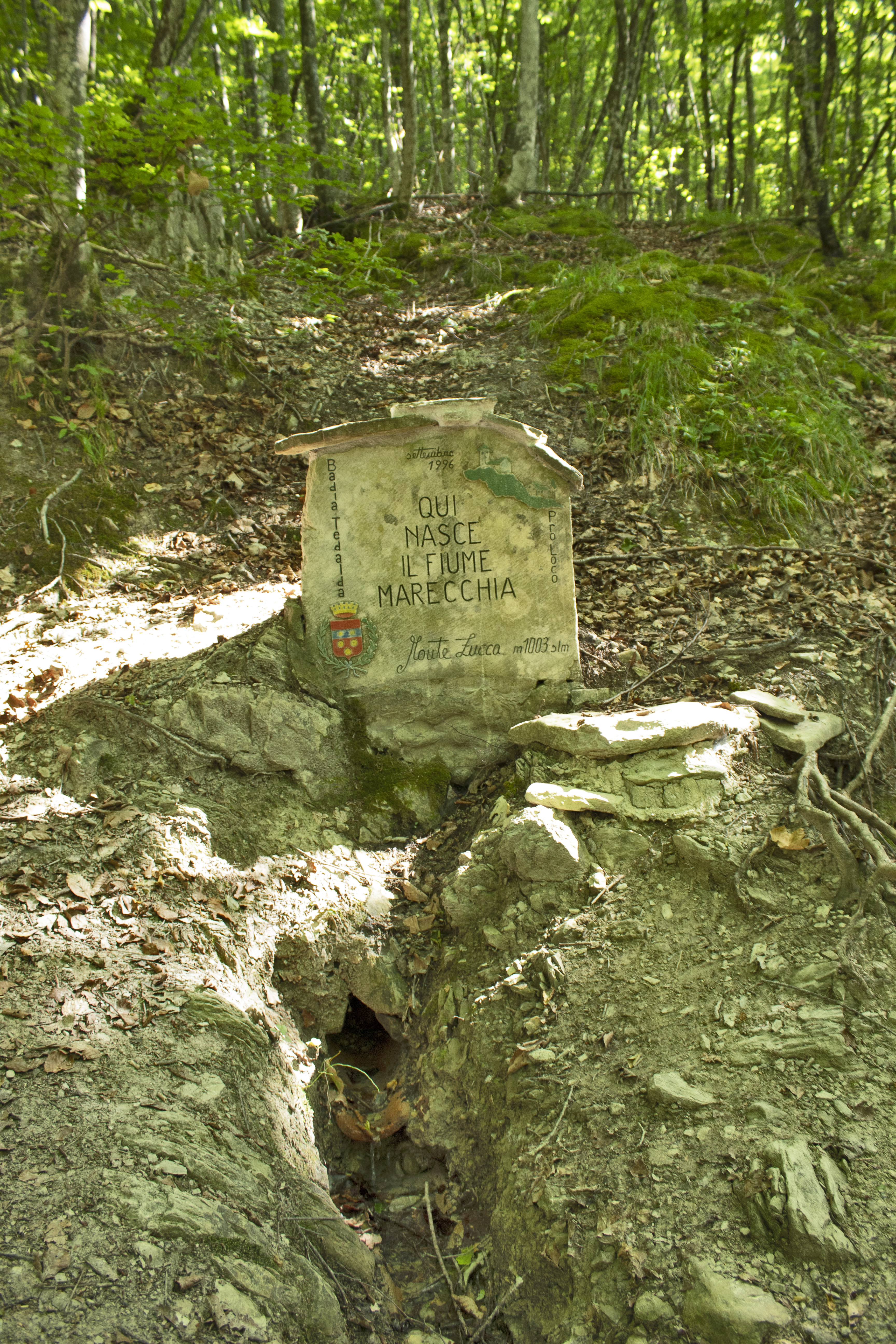 Il sentiero per raggiungere la sorgente del Marecchia parte dalla località Pratieghi, frazione di Badia Tedalda, e prosegue tra calanchi, campi, siepi e lembi di bosco, da cui si aprono spettacolari vedute sui Monti Fumaiolo e Aquilone, sull’alta valle del Tevere e sui vicini rilievi del Poggio tre Vescovi e Monte della Zucca. Nell’ultimo tratto il sentiero si immerge in una faggeta che risale il corso del fiume sino alla sua sorgente.