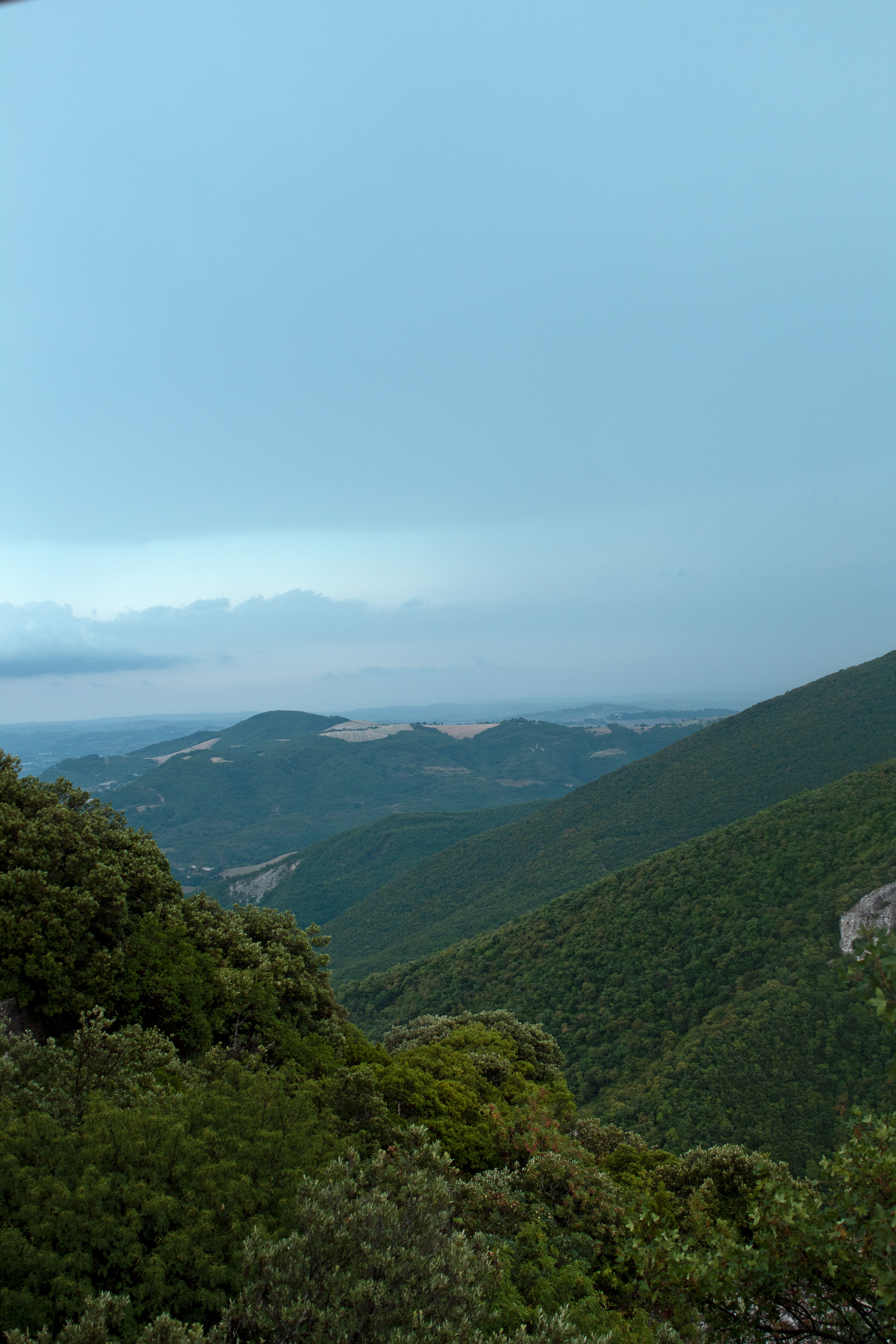 Imboccate il sentiero n. 449: prima tappa Terrazza del Furlo (1.20 h). Il sentiero si inoltra sin da subito nel bosco e presenta una discreta pendenza: il dislivello che percorrerete nel giro di pochi chilometri sarà abbastanza elevato (500 mt circa). Prestate particolare attenzione nella parte iniziale dove salendo a zig-zag incontrerete diverse svolte in corrispondenza di una delle quali occorrerà svoltare a destra anziché andar dritto (altrimenti si finirebbe alla palestra di arrampicata).