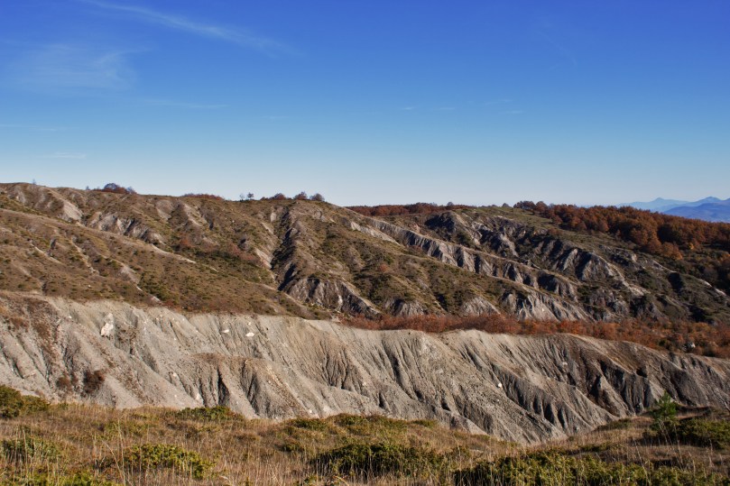 Il percorso non presenta particolari difficoltà tecniche: basta avere una minima preparazione fisica e il gioco è fatto. Per completare l’intero anello calcolate all’incirca 1 ora e 45 minuti. Sono certa che rimarrete completamente affascinati dal paesaggio che incontrerete lungo il cammino: calanchi di grigia arenaria, boschi di faggi. Al calar del sole tutto diventa più magico. L’unica pecca sono i segnavia CAI. In alcuni tratti non è assolutamente chiaro in che direzione proseguire. Addirittura abbiamo trovato segnali che indicavano la strada opposta rispetto a quella che si sarebbe dovuta percorrere.