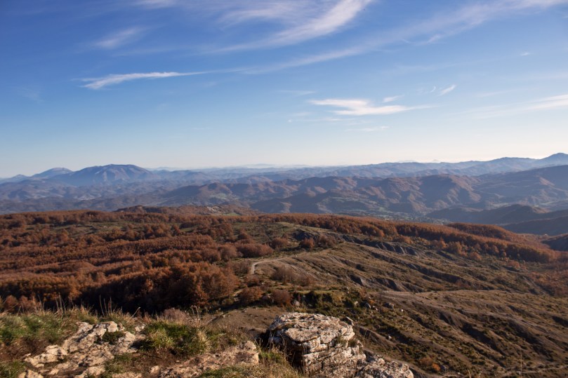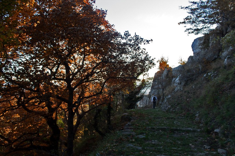 La luce è fioca, il sole si nasconde dietro i monti. Nel bosco tra poco farà buio. L’unico rumore percepibile è quello delle foglie che cadono e si appoggiano sul terreno fangoso. E’ così che termina anche questa splendida giornata in mezzo alle bellezze naturalistiche del Parco Sasso Simone e Simoncello.
