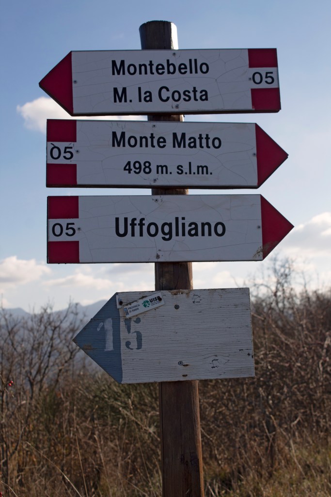 Percorsi circa 500 metri vi troverete ad un altro bivio dove tenere la sinistra in direzione Monte Matto fino ad arrivare ad un successivo bivio: a sinistra conduce alla cima del monte, a destra lo aggira. Noi abbiamo deciso di proseguire a sinistra. Per giungere alla cima dovrete affrontare un piccolo tratto leggermente esposto.
