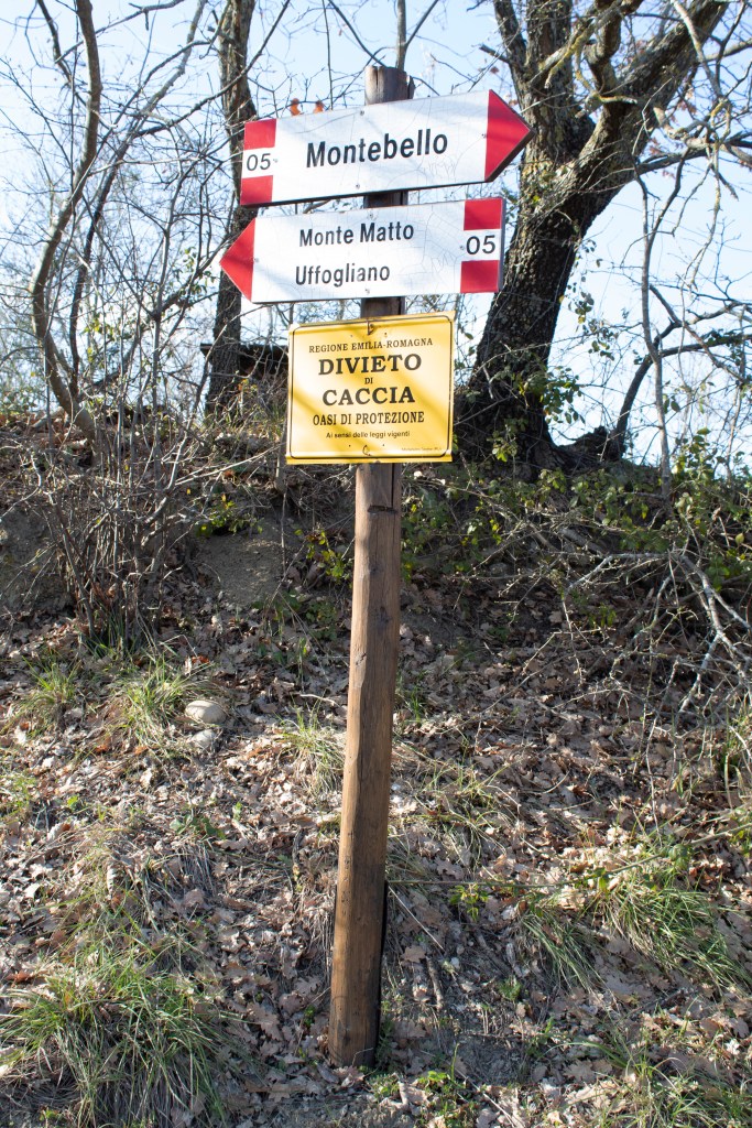 Punto di partenza dell’escursione è Montebello di Torriana, un antico borgo medievale collocato in vetta ad una piccola rupe calcarea. In auto, provenendo dalla SP 120, prima dei tornanti che salgono a Montebello, deviate a destra in Via Sabioni. Proseguite fino al bivio con via Scanzano dove dovrete mantenere la sinistra: eccovi giunti all’area di sosta, non distante dall’Osservatorio Naturalistico, dove troverete un piccolo parcheggio. Seguiamo il sentiero CAI n.03A, superiamo la deviazione per Montebello giungendo ad una croce di ferro collocata tra via Sabioni e via Rontagnano. Si prosegue dritto sul sentiero CAI n.05 e, giunti ad un casolare, si gira a destra fino a raggiungere i ruderi di Pian di Porta.
